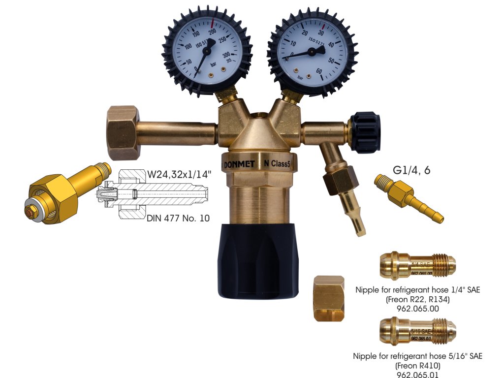 Kvalitní redukční ventil určený pro práci s dusíkem (N). Je vyroben z odolné mosazi a díky své robustní konstrukci zaručuje dlouhou životnost. Ventil je vybaven manometrem/manometry pro snadné sledování tlaku v lahvi i pracovního tlaku.