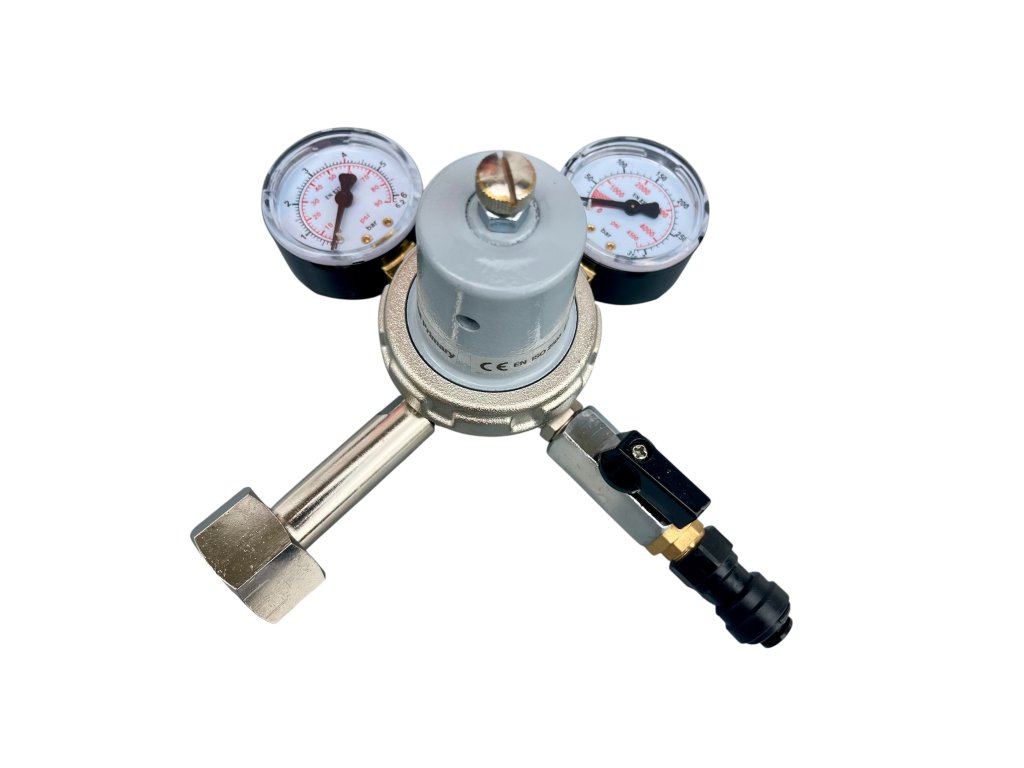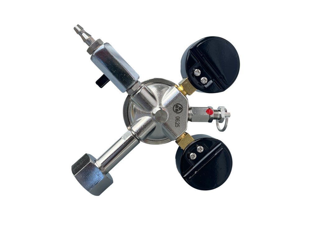 Profesionální redukční ventil určený pro tlakové láhve se směsí N2 a CO₂, ideální pro čepování piva a dalších sycených nápojů.