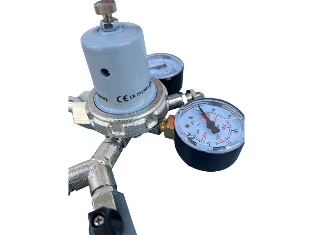 Profesionální redukční ventil určený pro tlakové láhve s CO₂, ideální pro čepování piva a dalších sycených nápojů.